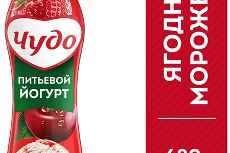 Йогурт питьевой Чудо Ягодное мороженое 1.9% 680г – вкусный, полезный и питательный кисломолочный продукт, изготовленный на основе натурального молока с добавлением закваски, кусочков ягод и прочих ингредиентов. Обладает нежной текстурой и приятным, умеренно сладким вкусом с нотками клубники, вишни и мороженого. Служит источником легкоусвояемого белка, минеральных веществ и витаминов, способствует комфортному пищеварению, ускоряет метаболизм. Отлично подойдет для легкого завтрака или перекуса в течение дня. Формат удобен для семейного потребления. Красочная, стильно оформленная бутылка непременно поднимет настроение и детям, и взрослым!