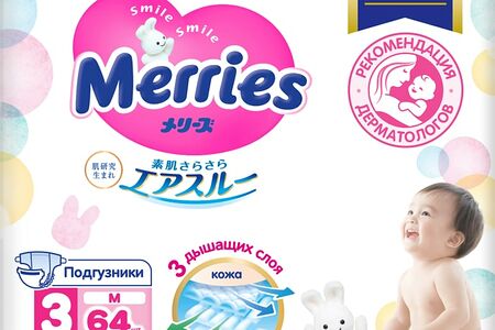 Подгузники Merries M 6-11кг 64шт тонкие японские подгузники, которые подарят вашему малышу максимальный комфорт и свободу движений с первых месяцев жизни. Уникальная технология трех дышащих слоев позволяет испарениям выходить наружу через специальные микропоры, обеспечивая идеальную сухость и защиту от опрелостей. Рельефная внутренняя поверхность, контактирующая с кожей, обладает невероятно мягкой и нежной текстурой, а инновационный впитывающий слой с воздушными каналами мгновенно поглощает жидкость и превращает ее в гель, который не вытекает даже при внешнем давлении. Эластичные оборочки вокруг ножек задерживают жидкий стул, а многоразовые липучки с округлыми краешками позволяют надежно зафиксировать изделие на животике малыша и не травмируют даже чувствительную кожу. Когда придет время заменить подгузник, две центральные полоски окрасятся в голубой цвет. Привлекательный дизайн с фирменными зайчиками Merries будет ежедневно поднимать настроение всем членам семьи.