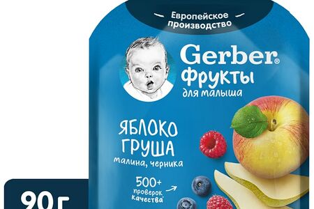 Пюре Gerber Яблоко-Груша-Малина-Черника с 6 месяцев 90г – натуральное лакомство, которое поможет разнообразить рацион малышей с 6-месячного возраста. Производится из отборных фруктов и ягод в соответствии с европейскими стандартами качества. Не содержит сахара, искусственных консервантов, красителей, ароматизаторов и ГМО. Обладает гармоничным вкусом и нежной однородной консистенцией. Мягкий пакетик с дозатором удобно брать с собой на прогулку, в гости, в дорогу. Ложечка для перекуса не потребуется, ведь малыш сможет кушать пюре прямо из упаковки. Gerber – это только натуральные ингредиенты и ничего лишнего! Перед тем как попасть к вам, детское питание этой марки проходит более 500 проверок.
