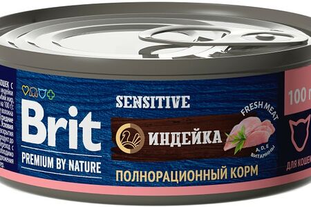 Влажный корм для кошек Brit Premium by Nature с мясом индейки при чувствительном пищеварении 100г доставка