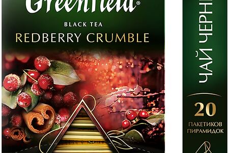 Чай черный Greenfield Redberry Crumble 20 пак достойное украшение любого чаепития! В готовом напитке легкая свежая горчинка брусники гармонично сочетается с глубоким насыщенным вкусом высококачественного цейлонского чая. Индивидуальность букету придает теплый аромат свежей сдобы. Чай, расфасованный в пакетики-пирамидки для разовой заварки, выручит вас, где бы вы ни находились: дома, на работе, в дороге, на даче. Он за считанные минуты заваривается в горячей воде, а свободное пространство внутри пирамидки позволяет чайным листочкам полностью раскрыться и передать напитку всю полноту вкуса. Каждая пирамидка упакована в герметичное фольгированное саше, надежно сохраняющее свежесть и органолептические свойства этого уникального купажа.