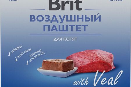 Влажный корм для котят Brit Воздушный паштет с телятиной 100г– полнорационный консервированный корм премиум-класса. Предназначен для котят. Производится по технологии аэрации без добавления искусственных ароматизаторов и консервантов. Сырье помещают в специальный аппарат – паштетный эмульситатор, где оно одновременно измельчается, смешивается, взбивается и насыщается воздухом. Готовый паштет имеет нежную, воздушную консистенцию и приятный вкус, благодаря чему обязательно понравится вашему питомцу. Состав корма тщательно сбалансирован: он содержит натуральное мясо (в том числе телятину), витамины, минералы, таурин, лососевое масло, полезные растительные компоненты. Герметичная алюминиевая упаковка нового поколения надежно сохраняет свежесть продукта и легко открывается.
