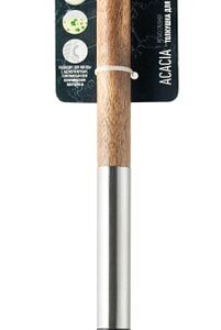 Толкушка предназначена для приготовления пюре. Изделие прекрасно подойдет для посуды с антипригарным, тефлоновым или керамическим покрытием. Рабочая часть изделия выполнена из пищевого пластика и выдерживает температуру до 260 ˚. Материал изготовления: нейлон, нержавеющая сталь 410, дерево (акация). Размер изделия 33,5*9,8см.