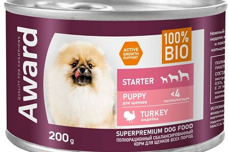Влажный корм для щенков Award с начала прикорма до 4 месяцев и для беременных Паштет из индейки 200г доставка