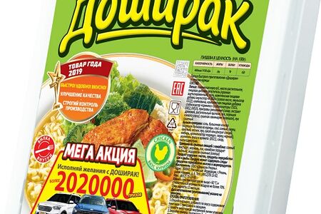 Лапша Доширак со вкусом курицы 90г классическая лапша быстрого приготовления в удобной порционной упаковке. Производится из высококачественных ингредиентов. Обладает приятным куриным вкусом, имеет насыщенный аромат с нотками специй. Лапшу можно брать с собой в дорогу, на дачу, в командировку. В комплект входит небольшая вилка, благодаря чему вы сможете утолить голод в любое время и в любом месте. Просто залейте лапшу кипятком, добавьте приправы, подождите несколько минут и наслаждайтесь полноценным блюдом. Продукция Доширак проходит строгий контроль качества и безопасности на всех этапах производства. Она отличается отменными вкусовыми свойствами, поэтому ее так любят те, у кого нет возможности тратить много времени на приготовление еды.