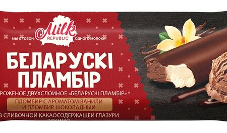 Мороженое Milk Republic двухслойное Пломбир с ароматом ванили и шоколада 15% 80г доставка