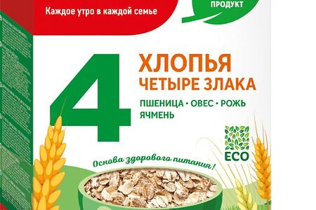 Хлопья Ясно солнышко 4 злака 375г производятся из отборных зерен овса, пшеницы, ячменя и ржи, расплющенных и обработанных по технологии двойного пропаривания. Это 100% натуральный и удобный продукт быстрого приготовления, в котором сохранилась вся польза и питательная ценность цельных злаков. Теперь, чтобы приготовить вкусную и нежную мультизлаковую кашу, вам понадобится всего 10 минут: просто залейте хлопья горячей водой или молоком (на 1 стакан хлопьев - 2 стакана жидкости), проварите в течение 5 минут и дайте настояться под крышкой еще 5 минут. По вкусу добавьте соль, сахар и сливочное масло.