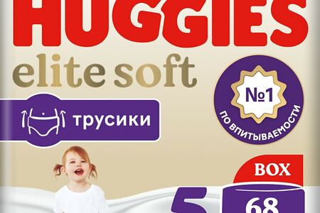 Подгузники трусики Huggies Elite Soft 12-17кг 5 размер 68шт доставка