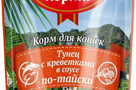 Влажный корм для кошек Родные корма Заморские Тунец с креветками в соусе по-тайски 70г доставка