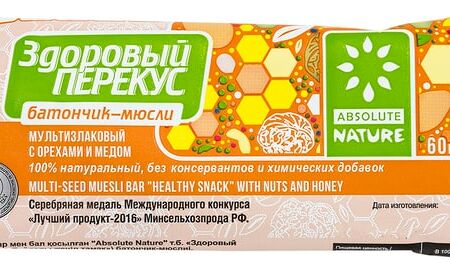 Батончик мюсли Здоровый Перекус с орехами и медом 60г - это полезный и питательный продукт, приготовленный исключительно из натуральных ингредиентов. В его состав входят хлопья четырех видов зерновых, воздушные злаки, дробленые орешки, кунжут, ореховая паста и мед, собранный в экологически чистом районе Ленинградской области. Батончик не содержит сахара, искусственных красителей, ароматизаторов и консервантов. Он быстро утоляет голод и идеально подходит для правильного перекуса. Благодаря удобному формату, его можно брать с собой в путешествие, на работу или учебу. Продукт стал лауреатом международного конкурса "Лучший продукт-2017".