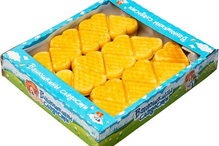 Сведения о составе: Маргарин (рафинированные дезодорированные растительные масла в натуральном и модифицированном виде (пальмовое масло, подсолнечное масло), вода, соль, эмульгаторы: моно и диглицериды жирных кислот, эфиры полиглицерина и жирных кислот), ароматизатор «Сливки-молоко», краситель Каротин, регулятор кислотности лимонная кислота), мука пшеничная хлебопекарная в/c, сахар-песок, меланж, сыворотка молочная сухая, мука кукурузная, смесь кондитерская (мука пшеничная, сахар, стабилизатор крахмал отбеленный кукурузный, сыворотка сухая молочная, разрыхлители: пирофосфат натрия, карбонат натрия, стабилизатор ксантановая камедь, консервант сорбиновая кислота, краситель Каротин), соль, консервант сорбат калия, ароматизатор «Ванильно-сливочный»Пищевая ценность: 380,4,14,60Условия хранения: 23,13Срок годности в днях: 60Страна изготовления: РоссияПроизводитель: Ванюшкины Сладости