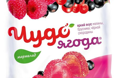 Мармелад Чудо-Ягода Малина брусника черная смородина 250г - это продукт легендарной московской кондитерской фабрики Рот Фронт. Он производится на основе натуральных соков и пектина, имеет упругую, немного пружинящую структуру, обсыпан сверху хрустящими кристалликами сахара. Выполнен в форме разноцветных полусфер и представлен в трех разных вкусах: малиновом, брусничном и черносмородиновом. Не содержит жиров. Это отличное угощенье к семейному чаепитию и ингредиент для выпечки бисквитов и маффинов (порубите мармелад на мелкие кусочки, вмешайте в готовое тесто и пеките как обычно - у вас получатся аппетитные изделия с красивым разрезом и ягодным ароматом).