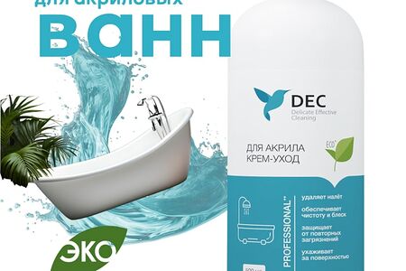 Чистящее средство DEC для акриловых поверхностей 0.5л предназначено для очистки ванн, в т.ч. гидромассажных, душевых кабин от мыльных, масляных и других видов загрязнений, а также известкового налета; для очистки поверхностей из кафеля, керамики, пластика, хромированных поверхностей и т.п. в квартирах, частных домовладениях, в местах общественного пользования (гостиницы, сауны и т. п.). Расход: 500 мл средства на 50-100 очисток в зависимости от степени загрязненности поверхности.