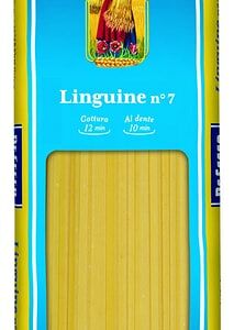Спагетти De Cecco Linguine №7 500г - натуральный продукт, приготовленный из муки твердых сортов пшеницы высшего качества с использованием родниковой воды. Они немного отличаются от обычных спагетти формой и длиной: на срезе лингвини овальные, а внешне слегка сплющенные. Отлично сочетаются с мясными и томатными соусами, с морепродуктами, моллюсками, сливочными соусами и мягким сыром. Для изготовления фирменной пасты De Cecco используется оригинальная рецептура Филлипо де Чекко, крупка Semola, родниковая вода из источника в национальном парке Майелла и старинная технология сушки. Именно поэтому паста De Cecco всегда получается упругая, с хорошей текстурой, сохраняет форму при варке и получается al dente.