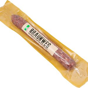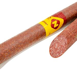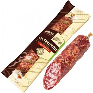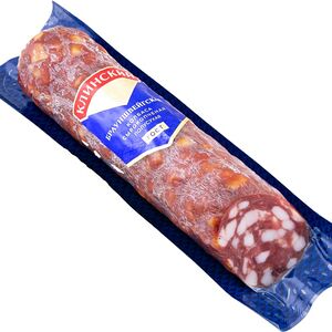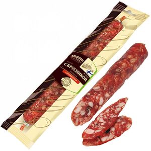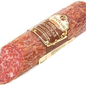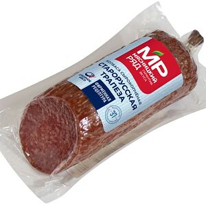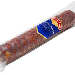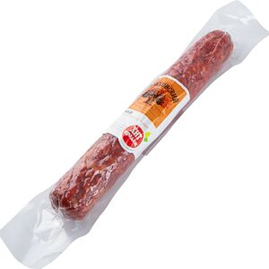 Сведения о составе: Свинина, шпик, мясо птицы курица, пряности (тмин, кориандр,паприка, кумин, чеснок), растительный белок, нитритно-посолочная смесь (соль пищевая, фиксатор окраски нитрит натрия) усилитель вкуса и аромата Е621, антиокислитeль Е316, пшеничное волокно, экстракты пряностей (паприка, белый перец),краситель кармины,стартовые культурыПищевая ценность: 390,18,35,1Условия хранения: 12,0Срок годности в днях: 90Страна изготовления: РоссияСведения об упаковке: Вакуумная упаковкаПроизводитель: Мясницкий ряд