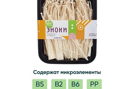 Грибы Эноки 100г деликатесные грибы, обладающие тонким ароматом, слегка специфическим вкусом и упругой, хрустящей текстурой. Хорошо сочетаются со свининой, курицей, говядиной, соевым соусом, рыбой, яйцами, креветками, овощами, лапшой. Широко используются в азиатской кухне. Подходят для приготовления салатов, закусок, супов, вторых блюд. Эноки богаты железом, фосфором, калием, медью, цинком, витаминами (В2, В5, РР), аминокислотами и клетчаткой, благодаря чему оказывают благотворное влияние на здоровье человека. Они обладают антиоксидантными свойствами, помогают побороть стресс и справиться с усталостью, подходят для диетического рациона. Опытные кулинары советуют добавлять их в первые и вторые блюда в самом конце приготовления.