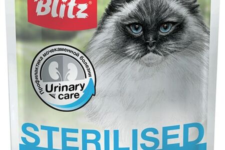 Влажный корм для кошек Blitz Classic Sterilised cat для стерилизованных Курица и брусника 85г доставка