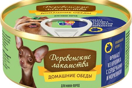 Корм для собак Деревенские Лакомства Домашние обеды Фрикасе из кролика сердечки морковь 100г доставка