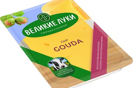 Сыр Великие Луки полутвердый Gouda 45% нарезка 125г доставка