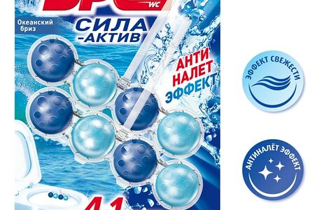 "Бреф Сила-Актив" с антиналет-эффектом — подвесной туалетный блок с формулой против известкового налета. Активная формула с антиналет-эффектом действует в 4 направлениях: образует очищающую пену, которая обеспечивает гигиеническую чистоту; предотвращает образование известкового налета; помогает предотвратить повторное загрязнение; придает туалетной комнате свежий аромат океана после каждого смывания. "Бреф Сила-Актив" придает антиналет-эффект при каждом смывании.
