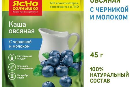 Каша Ясно солнышко Овсяная с черникой и молоком 45г доставка