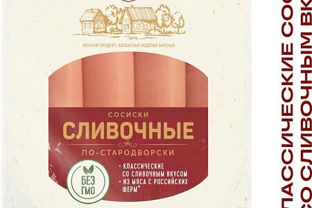 Сосиски Стародворье Сливочные По-Стародворски 450г – классические колбасные изделия, которые покорят вас сочной текстурой и приятным вкусом с нежными молочными нотками. Изготовлены из свинины, куриного мяса и говядины с добавлением натуральных сливок, яиц, специй и прочих ингредиентов. Отварите их в кипящей воде, обжарьте на сковороде или используйте для приготовления солянки, выпечки, омлетов, запеканок, хот-догов. Вакуумная упаковка надежно сохраняет свежесть сосисок в течение всего срока годности. Продукция бренда «Стародворье» производится по уникальным деревенским рецептам на современном оборудовании – вот почему она получается не только качественной, но и по-домашнему вкусной.
