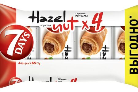 Насладитесь ярким шоколадно-ореховым вкусом в каждом круассане 7 Days с кремом "Фундук". Удобный формат мультиупаковки: 4 круассана 7 Days. Удобно взять с собой про запас или угостить близких! Круассан 7 Days — это идеальный перекус в любое время дня. Он удобно упакован и готов к употреблению. Великолепный дуэт воздушного слоёного теста и нежной начинки поможет притупить чувство голода и сделает ваш день восхитительным.