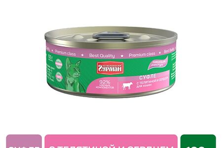 "Четвероногий гурман Суфле" для кошек — это влажный корм премиум-класса, приготовленный по уникальной рецептуре из самых привлекательных для кошек видов мяса и субпродуктов. Главная отличительная особенность данной линейки — нежнейшая воздушная текстура, которая придется по вкусу самым привередливым кошкам. Корм полностью натуральный — в его составе нет искусственных красителей, ароматизаторов, усилителей вкуса и ГМО. Подходит для взрослых кошек всех пород.