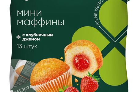 Мини-маффины Маркет с ароматом сливок и начинкой из клубничного джема 432.9г доставка