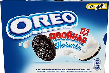Бисквитное печенье Oreo — хрустящее печенье с какао и нежной двойной начинкой со вкусом ванили, которое любит весь мир. Еще больше начинки — еще больше вкуса! Взрослым и детям нравится забавный способ, которым едят Oreo: покрути, лизни, обмакни. Попробуйте, это весело и очень вкусно. Печенье Oreo — вкусный перекус, который отлично сочетается с молоком, чаем, кофе и соком, его удобно съесть на завтрак, взять с собой в дорогу, взять в школу, в университет, на работу или на прогулку. Печенье Oreo идеально подходит, чтобы сделать перерыв, побаловать себя, провести время с семьей, для просмотра фильма или сериала, для встречи с друзьями. Это отличный вариант сладкого угощения на праздник и на день рождения. Удобная упаковка. Печенье с какао и двойной начинкой с ванильным вкусом безусловно порадует и детей, и взрослых! Oreo — играй всегда.