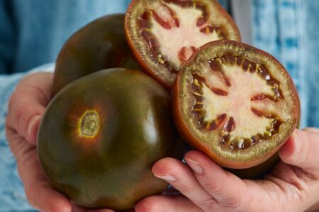 Томаты Кумато - один из самых экзотических сортов помидоров. Идея его создания пришла в голову Луису Ортега, а доработана она была в ходе 10-летних экспериментов в швейцарской компании Syngenta. В итоге многочисленных опытов по скрещиванию разных сортов и пигментов появились уникальные томаты - с кожурой глубокого бордово-зеленого цвета, плотной и сочной мякотью, удивительно сладким вкусом и высоким содержанием витаминов. Они довольно мясистые, с небольшим содержанием сока. Отлично подходят для приготовления салатов, закусок и канапе.