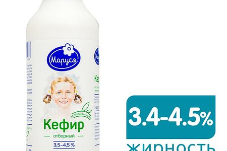 Кефир Маруся Отборный 3.5-4.5% 930г производится из цельного молока и закваски на кефирных грибках. Для его приготовления на заводе используется термостатный способ. После проверки сырья на качество, оно подвергается пастеризации, затем разливается в пластиковые бутылки и смешивается с закваской. Только после этого закрытые бутылки помещаются в специальную термокамеру для сквашивания, а спустя 12 часов отправляются для созревания еще на 8 часов. Готовый продукт имеет приятный кисломолочный вкус, густую консистенцию и высокую питательную ценность. Он благоприятно воздействует на пищеварение и работу кишечника, способствует очищению организма от шлаков и токсинов, укрепляет иммунитет. Рекомендуется для здорового и диетического питания взрослых и детей.