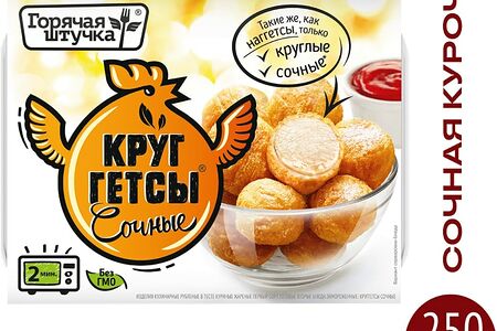 Круггетсы Горячая штучка Сочные 250г – это вкуснейшие куриные наггетсы, которым придали новую, абсолютно круглую форму. Производятся из высококачественных ингредиентов и бережно обжариваются во фритюре, в процессе чего приобретают хрустящую золотистую корочку. Продукт полностью готов к употреблению, вам осталось лишь разогреть его на сковороде или в СВЧ-печи. Круггетсы отлично подойдут для сытного и быстрого перекуса, а также станут прекрасным дополнением к салату «Цезарь». «Горячая штучка» – это инновационный бренд, который не боится экспериментировать, что позволяет ему постоянно двигаться вперед и совершенствовать самые обычные продукты.