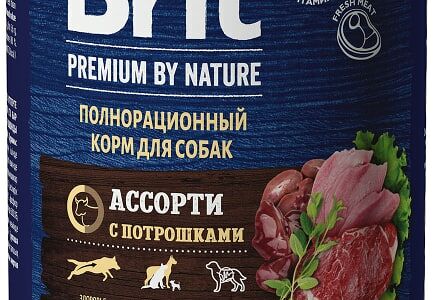 Влажный корм для собак Brit Premium by Nature с мясным ассорти и потрошками 410г доставка