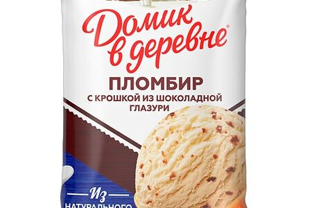 Мороженое Домик в деревне пломбир с ароматом ванили с крошкой из шоколадной глазури в вафельном стаканчике 12% 80г доставка