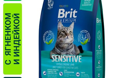 Сухой корм для кошек Brit Premium Sensitive с курицей и бараниной 0.4кг доставка