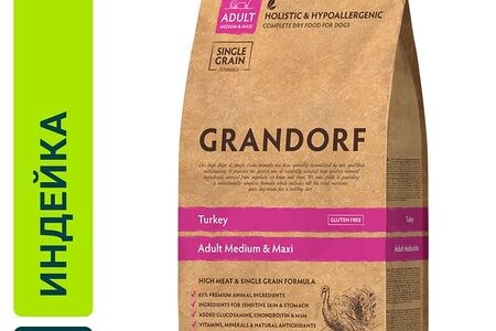 Сухой корм для собак Grandorf Adult Medium & Maxi для средних и крупных пород с индейкой и рисом 1кг доставка