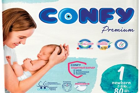 Подгузники Confy Premium Jumbo Размер 1 1-3кг 80шт доставка