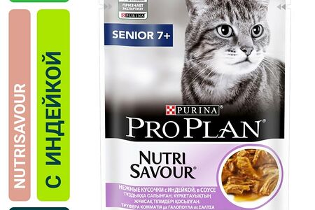 Влажный корм для пожилых кошек Pro Plan Nutri Savour Senior 7+ кусочки в соусе с индейкой 85г доставка