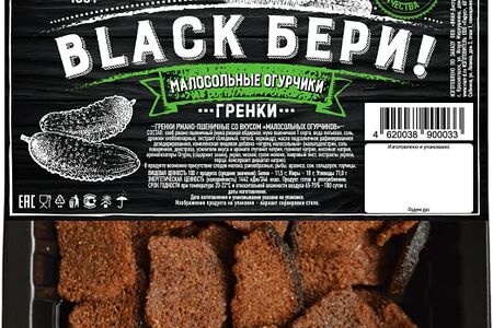 Сведения о составе: Хлеб ржано-пшеничный (мука ржаная обдирная, мука пшеничная 1 сорта, вода питьевая, соль, дрожжи, комплексная пищевая добавка «Краситель Esco «Черный» (масло растительное подсолнечное, краситель (Е153), антиокислитель (Е320)), масло подсолнечное рафинированное дезодорированное, комплексная пищевая добавка «огурец малосольный» (мальтодекстрин, соль поваренная, декстроза, усилители вкуса и аромата Е621, Е627, Е631, ароматизаторы Огурец (содержит злаки), укроп, чеснок; сухое молоко, лавровый лист, экстракты укропа, перца, консервант Е262II). В продукте возможно присутствие следов молока, ракообразных, рыбы, арахиса, сои, сельдерея, горчицыПищевая ценность: 346,11.5,18,71Условия хранения: 22,20Срок годности в днях: 180Страна изготовления: РоссияСведения об упаковке: ЛотокПроизводитель: Парус