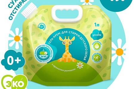 Густой гель-крем Giraffe с нежным ароматом ромашки. Мягкая формула и экономичный расход. Предназначен для стирки детского белья с рождения. Подходит для машинной и ручной стирки. Температурный режим для эффективной стирки — 30-90 °C. Начинает работать уже через 2 минуты. Отстирывает пятна без предварительного замачивания. Входящее в состав неионогенное вещество способствует быстрому удалению загрязнений из волокон ткани. Придаёт белью кристальную чистоту и свежесть. Является на 100% биоразлагаемым. Активный компонент удаляет с детского нательного белья любые органические загрязнения, а также кишечную палочку из каловых масс.