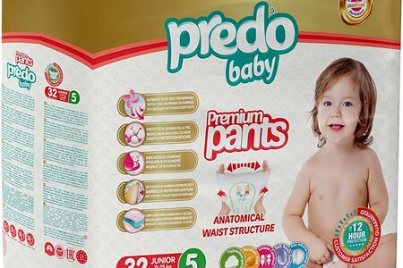 Подгузники-трусики Predo Baby №5 11-25кг 32шт производятся из натуральных гипоаллергенных материалов, которые позволят вашему ребёнку чувствовать себя комфортно. Они тонкие, что удобно при движении ребёнка. Воздухопроницаемые материалы позволяют коже малыша дышать. Внутренний слой с повышенной концентрацией SAP лучше поглощает и удерживает влагу. Кремовая пропитка защищает кожу малыша от опрелостей и снижает вероятность появление сыпи. Защитный барьер от протеканий. Внешняя поверхность боковых резиночек loop-hoop сделана из текстиля, они расстёгиваются в три этапа, что очень удобно. Полоска-индикатор наполняемости подгузника. Клапан для утилизации подгузника.