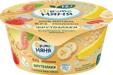 Продукт овсяный ФрутоНяня Клубника банан яблоко с 12 месяцев 140г доставка