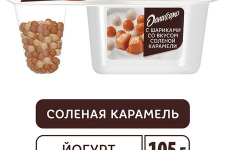 Йогурт Даниссимо Фантазия с хрустящими шариками со вкусом солёной карамели 105г доставка