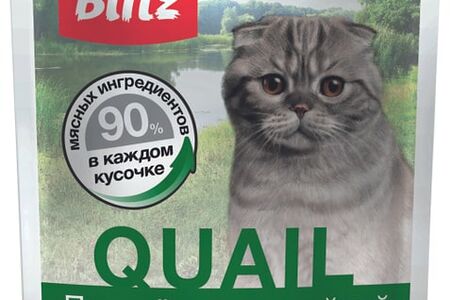 Полнорационный влажный корм для взрослых кошек Blitz Holistic Quail & Turkey Adult Cat All Breeds создан на основе перепелиного и индюшачьего мяса с добавлением высококачественных субпродуктов. Такое сочетание позволяет добиваться не только идеального вкуса и притягательного для кошек аромата, но и баланса питательных веществ.