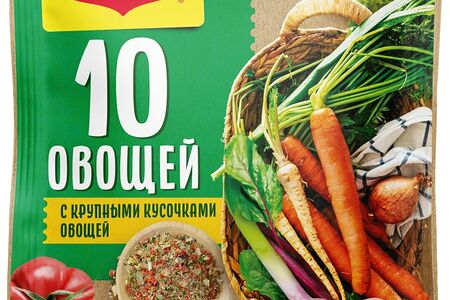 Приправа Maggi 10 овощей 75г это идеально подобранная композиция, состоящая из сушеных овощей, зелени и специй. Сладкая морковка, сочные томаты, золотистый лучок, пикантная паприка, душистый укроп и другие натуральные компоненты придадут вашим кулинарным шедеврам неповторимый вкус и изысканный аромат. Продукт уже содержит соль, поэтому рекомендуется попробовать блюдо перед тем, как досаливать его. Герметичная упаковка надежно сохраняет свежесть, вкусовые качества и рассыпчатую текстуру приправы в пределах всего срока годности. Для производства своей продукции Maggi выбирает только простые и понятные ингредиенты, которые вы используете на своей кухне. Благодаря такому подходу все ваши блюда получатся по-настоящему домашними и натуральными.