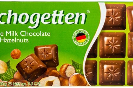 Шоколад Schogetten Альпийский молочный с фундуком 100г приготовлен из отборных какао-бобов (массовая доля какао составляет не менее 30%) и расколотых на мелкие кусочки хрустящих лесных орехов. Уникальность этого шоколада не только в его рецептуре, но и в форме. В упаковке вы не найдете цельной плитки: она уже поделена на аккуратные квадратные ломтики с фирменным оттиском, разложенные на плотной картонной подложке. Такие кусочки удобно не только есть, но и подавать к чайному столу - их можно выложить в вазочку как оригинальные шоколадные конфеты.
