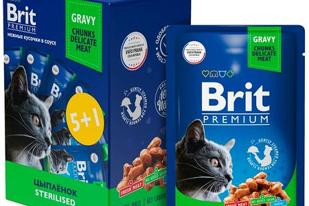 Набор влажного корма для стерилизованных кошек Brit Premium Цыпленок в соусе 85г*5+1шт доставка