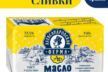 Масло сладко-сливочное Александровская ферма 72.5% 150г доставка