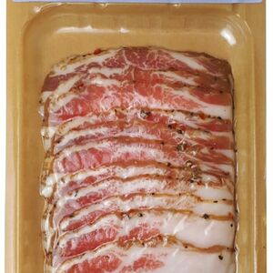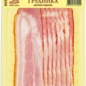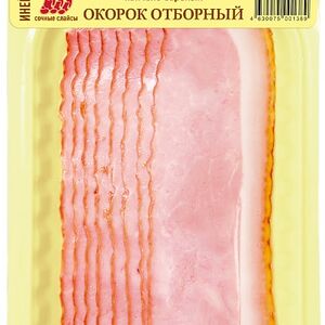 Сведения о составе: свинина, вода, соль, регуляторы кислотности: трифосфаты, ацетаты натрия, цитраты натрия; стабилизаторы: пирофосфаты и полифосфаты; сахар, антиокислитель аскорбат натрия, нитритно-посолочная смесь (соль, фиксатор окраски Е250), молочный белок, животный белок свиной, ароматизаторПищевая ценность: 177,15,13Условия хранения: 6,0Срок годности в днях: 45Страна изготовления: РоссияСведения об упаковке: Вакуумная упаковкаПроизводитель: ОМПК
